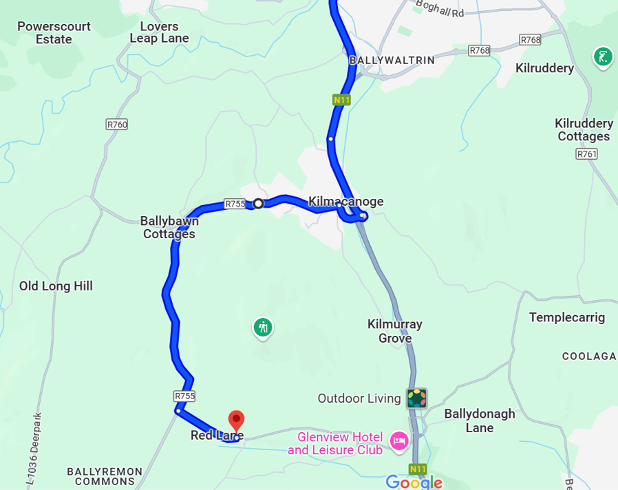 所以我會強烈建議要過來的話,無論從哪個方向過來,都先把車開到R755這條路,接著再轉入位於L1031路上的Sugarloaf停車場,會輕鬆不少。離開時一樣去走R755。如下圖這樣: