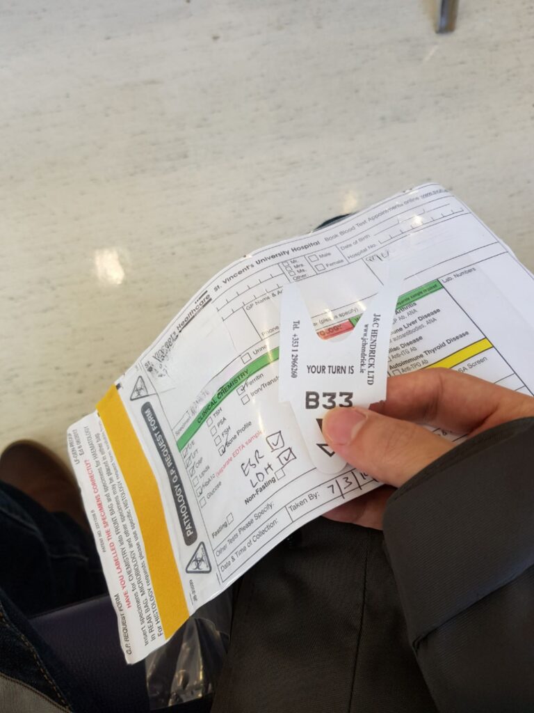 急診室Check-in以後,我找了張椅子坐下來,大約半小時後,護士請我過去做初步處理,因為GP都已經把狀況寫在轉診單上了,所以護士大概就是跟我聊聊狀況,另外幫我做心電圖(ECG)以及抽血,順便還做了COVID檢驗。抽血時順便幫我埋好針,護士說先埋好也許等等需要注射抗生素治療。
