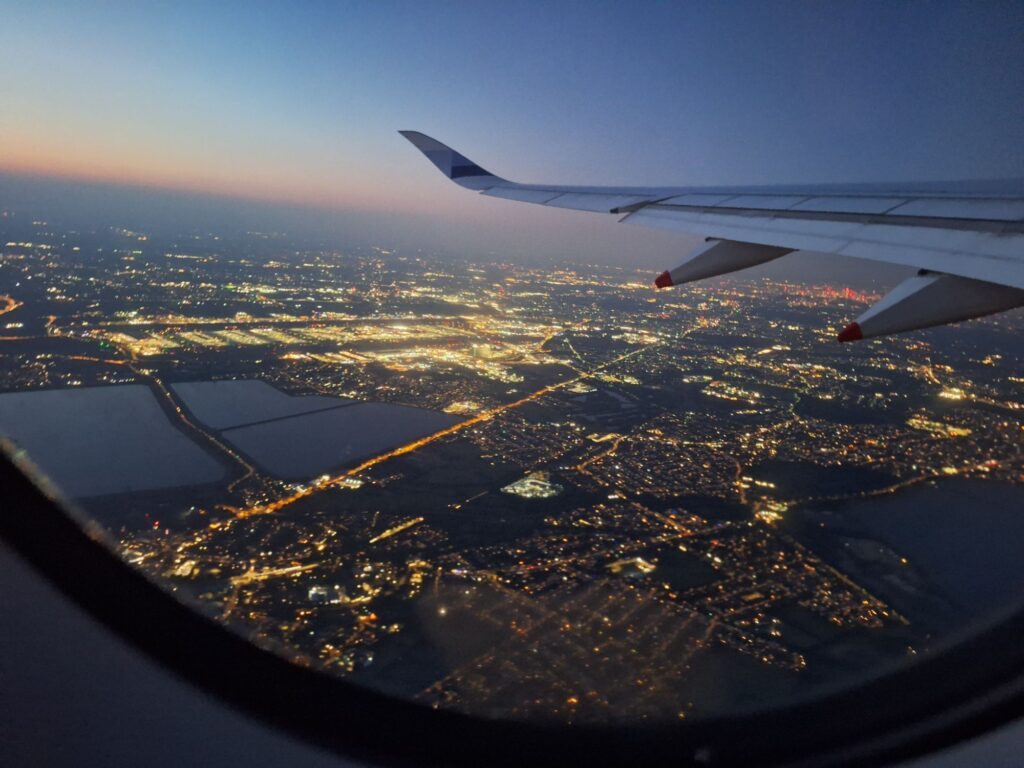 最後我們比表訂時間晚15分鐘抵達,也就是說機長今天真的催很快。但因為坐最後一排的關係,我們最晚下飛機。接著依照紫色Flight connection的指示,就能找到巴士站。這邊要注意不要跟著人潮,要跟緊Flight connection的箭頭。